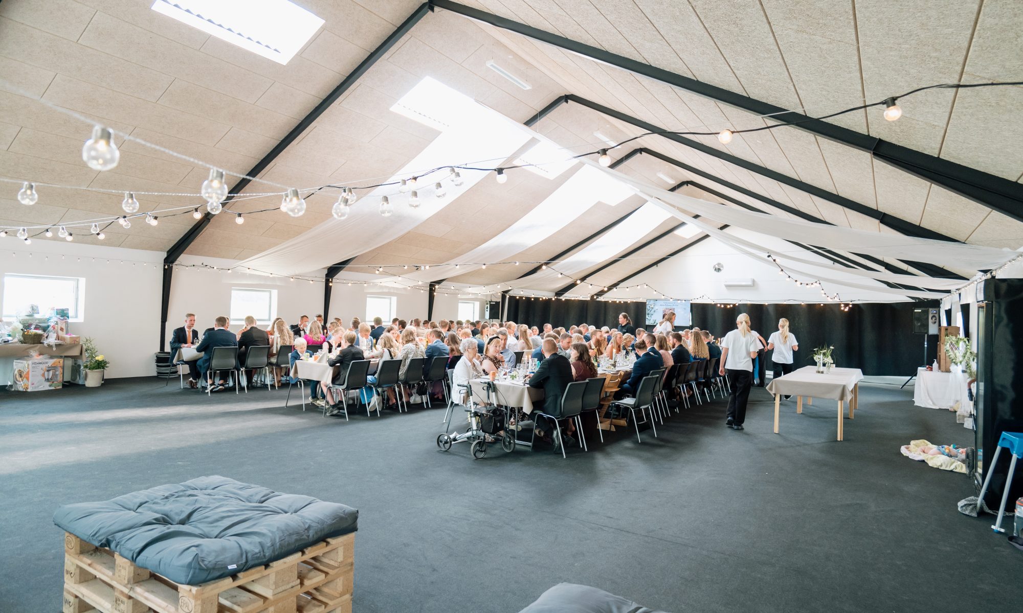 Vi anbefaler dog max. 110 gæster, hvis der skal være plads til dette.